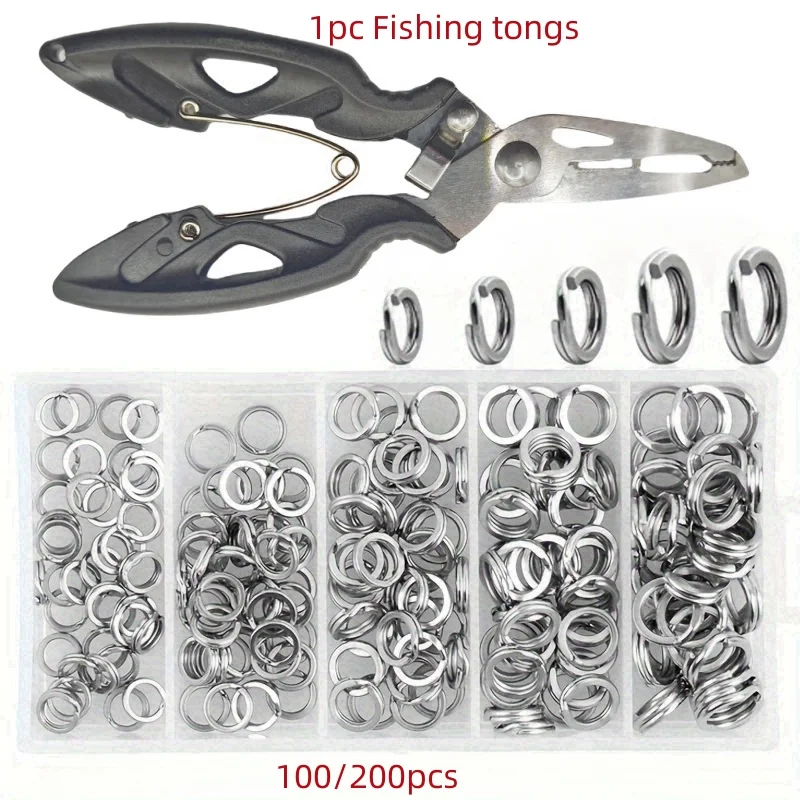 100/200pcs Stainless Steel Split Rings with Fishing Pliers