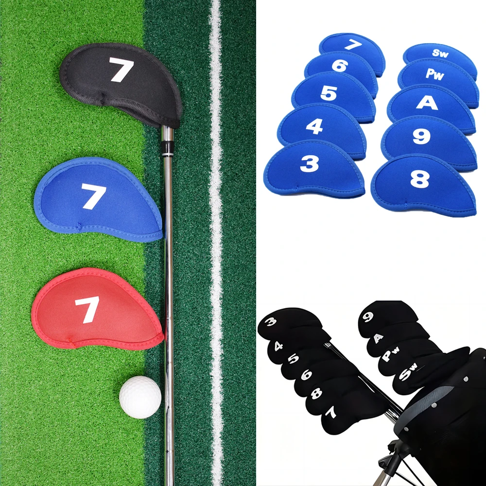 Protect your clubs in style with this 10pcs Golf Iron Head Covers Set, designed to safeguard your irons from scratches, dings, and weather damage. Made from durable, lightweight materials, these covers offer long-lasting protection while being easy to slip on and off during play. Available in black, red, and blue, they not only shield your clubs but also add a touch of personality to your golf bag. Each cover is precisely fitted to ensure a snug hold, keeping your irons organized and secure. Perfect for both practice sessions and tournaments, these head covers help extend the life of your clubs while maintaining a clean, professional look. Compact and portable, they fit easily into your bag, making them a must-have accessory for golfers of all levels.