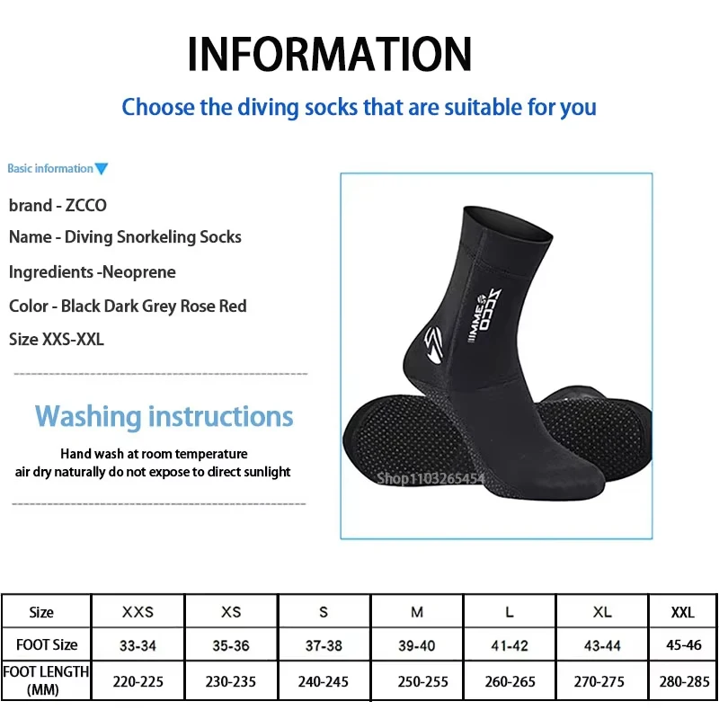 Protect your feet and stay comfortable with these 3mm neoprene diving socks, designed for warmth, grip, and durability in and out of the water. Made from high-quality neoprene, they provide effective thermal insulation, keeping your feet warm during diving, snorkeling, surfing, or swimming in cooler conditions. The anti-slip sole ensures strong traction on wet or slippery surfaces, enhancing safety on rocks, boat decks, or beaches. Their sand-proof design prevents irritation, making them perfect for long hours of use in sandy or shallow waters. Lightweight and flexible, these socks fit easily under fins, boots, or water shoes without restricting movement. Ideal for scuba diving, surfing, snorkeling, kayaking, or general beach activities, they combine comfort, protection, and versatility. Durable stitching ensures long-lasting performance, making them an essential accessory for water sports enthusiasts of all levels.