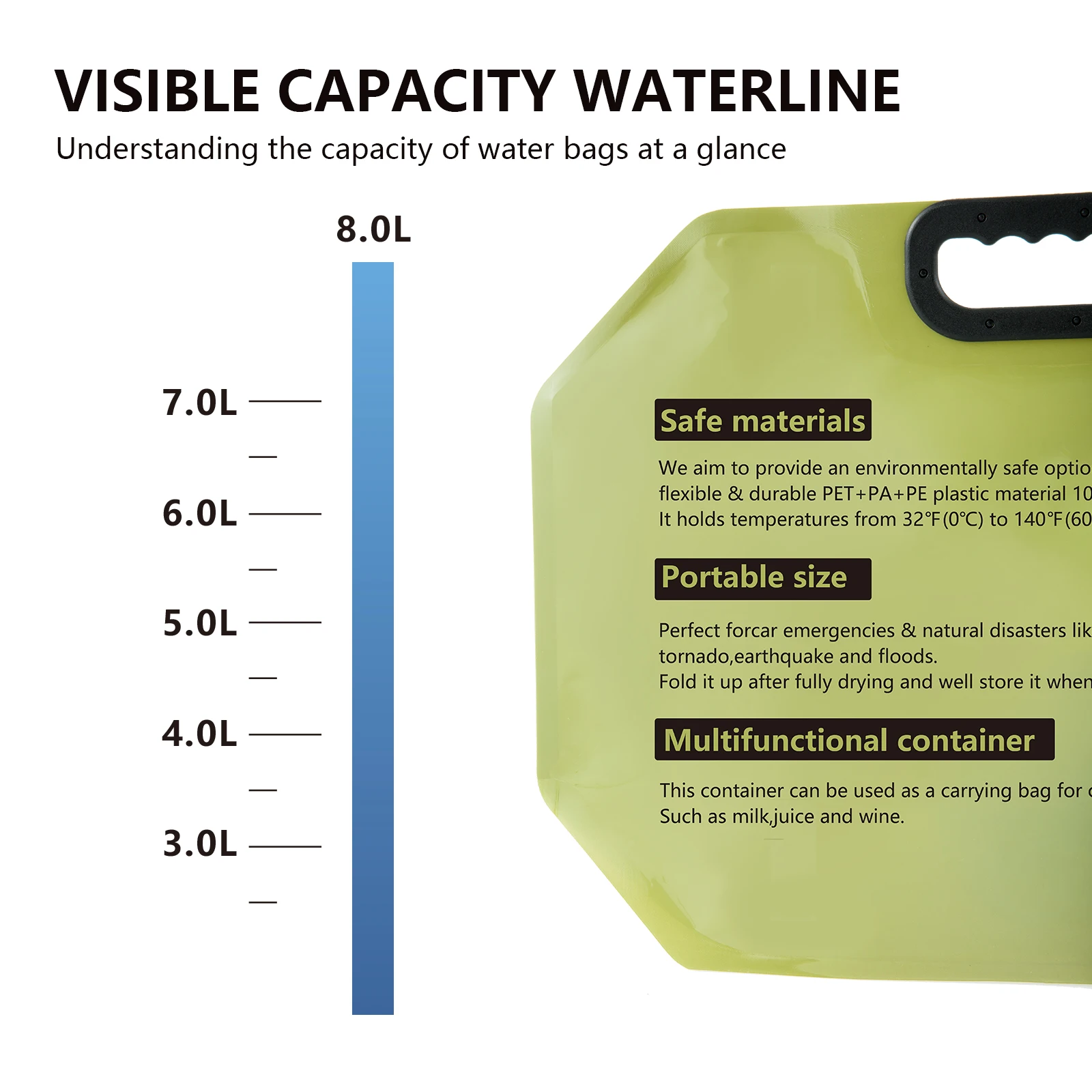 Stay hydrated on your adventures with the BSWOLF Outdoor Mini Folding Water Bag, offering a large 8L capacity for camping, hiking, travel, and emergency use. Made from thickened, food-grade material, it’s safe for drinking water and built to resist leaks, tears, and outdoor wear. The foldable, soft-body design makes it easy to pack when empty, saving valuable space in your backpack or car. Its lightweight portability ensures you can carry water comfortably while on the move, and the wide-mouth opening allows for easy filling, pouring, and cleaning. Perfect for outdoor cooking, group camping, long treks, or storing emergency water supplies, this bag combines durability, safety, and convenience. Whether for everyday outdoor hydration or survival situations, it’s a reliable and eco-friendly alternative to disposable bottles.