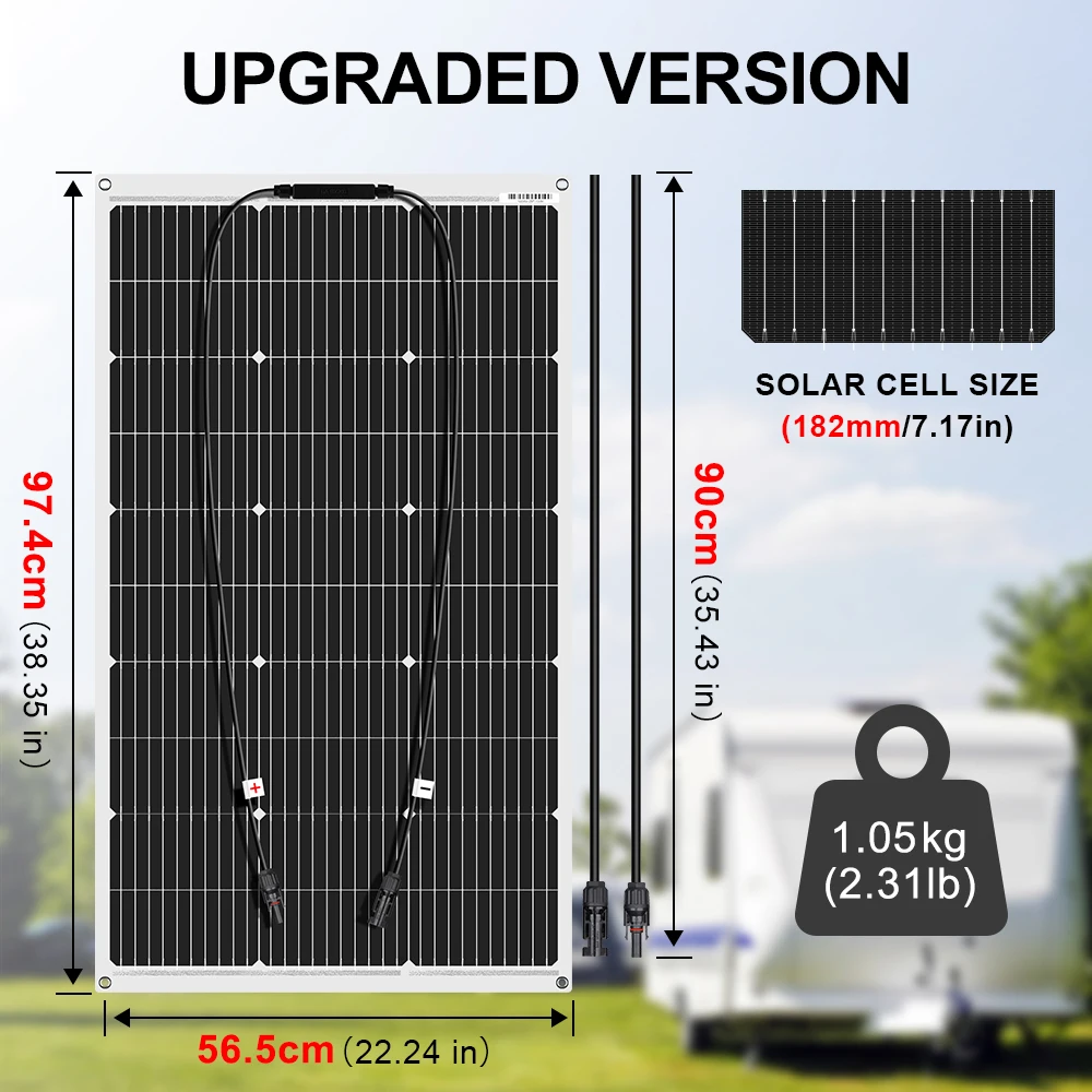 Harness clean energy on the go with the DOKIO 18V 200W Flexible Solar Panel, designed for camping, RVs, home backup, and off-grid adventures. Built with high-efficiency monocrystalline cells, this solar panel delivers reliable power output while remaining lightweight, slim, and foldable for easy portability. Its flexible design allows installation on curved surfaces such as RV roofs, boats, or tents, making it highly versatile. With IP65 waterproof protection, it withstands outdoor elements like rain and dust, ensuring consistent performance in rugged environments. Compatible with 12V battery systems and solar generators, it’s perfect for charging power stations, RV appliances, or outdoor electronics. Whether you’re preparing for emergencies or powering your next adventure, the DOKIO 200W solar panel combines efficiency, durability, and portability in one smart energy solution.