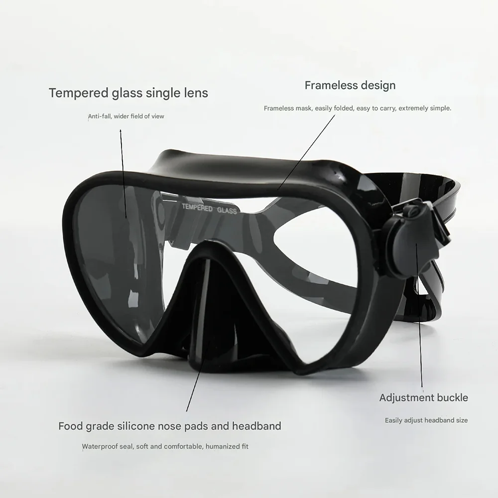 Enjoy clear vision and comfort underwater with this frameless diving mask and snorkel set, designed for swimmers, snorkelers, and divers of all levels. The frameless, low-volume design reduces drag and improves maneuverability, making it perfect for freediving and extended underwater training. Crafted from pure soft silicone, the mask provides a comfortable, leak-proof seal that adapts to different face shapes. The tempered glass lens delivers a wide, unobstructed view while resisting scratches and pressure. Paired with a wet snorkel, the set ensures smooth breathing and ease of use, even during long swims. The adjustable straps allow for a secure, personalized fit, enhancing comfort and stability in the water. Lightweight yet durable, this set is ideal for travel, recreational snorkeling, scuba practice, and pool training. Whether you’re improving your technique or exploring new depths, this snorkel set delivers reliability, performance, and comfort.