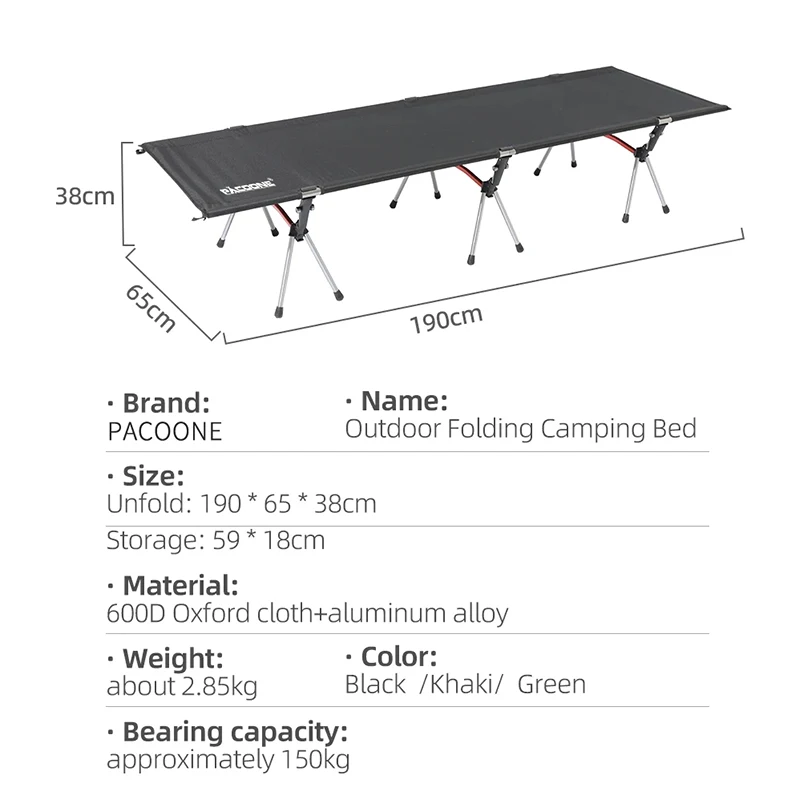 The PACOONE Portable Camping Cot is the ideal sleeping solution for hikers, backpackers, and campers seeking comfort and portability. Designed with a lightweight yet durable frame, this folding bed sets up easily and provides stable support for a restful night outdoors.