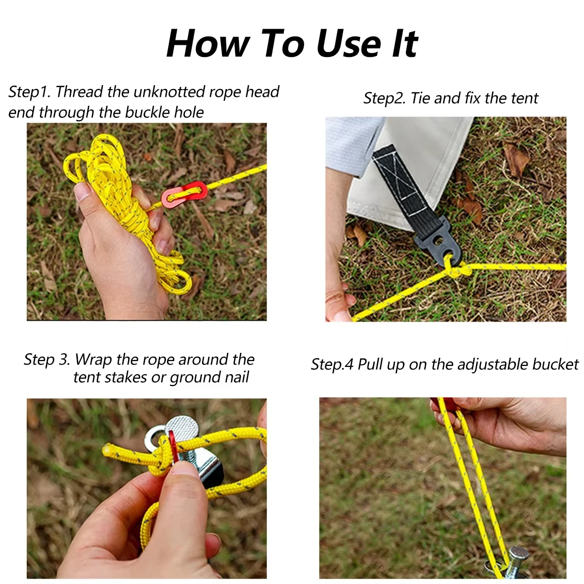 The 4MM Camping Tent Rope is a reliable and versatile accessory designed to keep your shelter secure in all conditions. Built with durable, high-strength material, it ensures long-lasting stability for tents, canopies, and beach shelters. The reflective design enhances nighttime visibility, reducing the risk of tripping and making your campsite safer. Each rope comes with adjustable tensioners, allowing you to tighten or loosen quickly for a secure fit on various surfaces. Lightweight and portable, these ropes are easy to pack, making them a must-have for camping, hiking, backpacking, or beach trips. Whether you’re setting up a tent, tarp, or canopy, these multifunctional reflective ropes provide extra stability and peace of mind during your outdoor adventures.