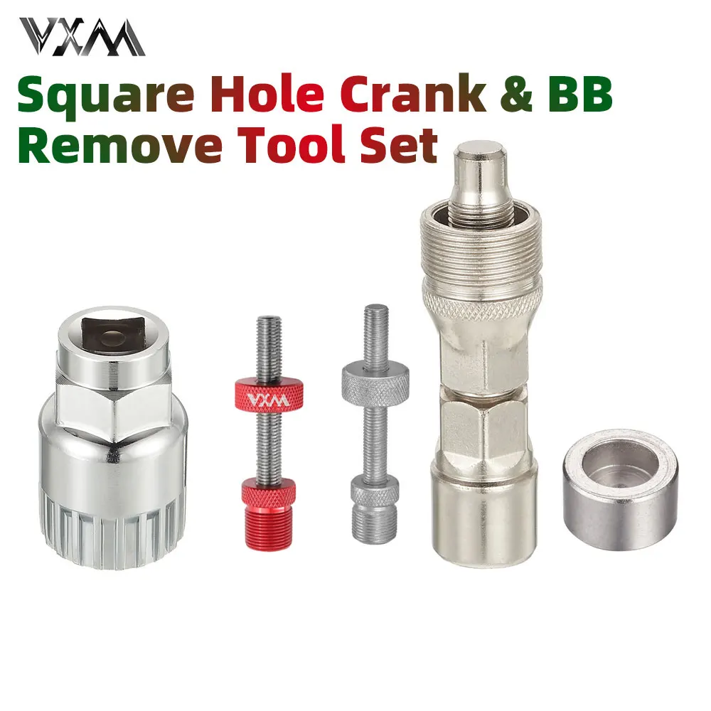 Easily service your bike with this square hole crank removal tool set, designed for both MTB and road bikes. Built for square taper cranksets, this tool set allows quick and efficient removal of cranks and bottom brackets, making it an essential item for maintenance and repairs. The set includes an anti-falling device and BB sleeve, ensuring a secure fit and preventing slippage during use. Crafted from strong, durable materials, the tools provide long-lasting reliability and can withstand repeated use in demanding workshop conditions. Compact and easy to use, they are suitable for both home mechanics and professional bike technicians. Whether you’re replacing a bottom bracket, upgrading components, or performing routine maintenance, this tool set ensures precise and hassle-free servicing. A must-have accessory for any cyclist who values proper bike care and smooth drivetrain performance.